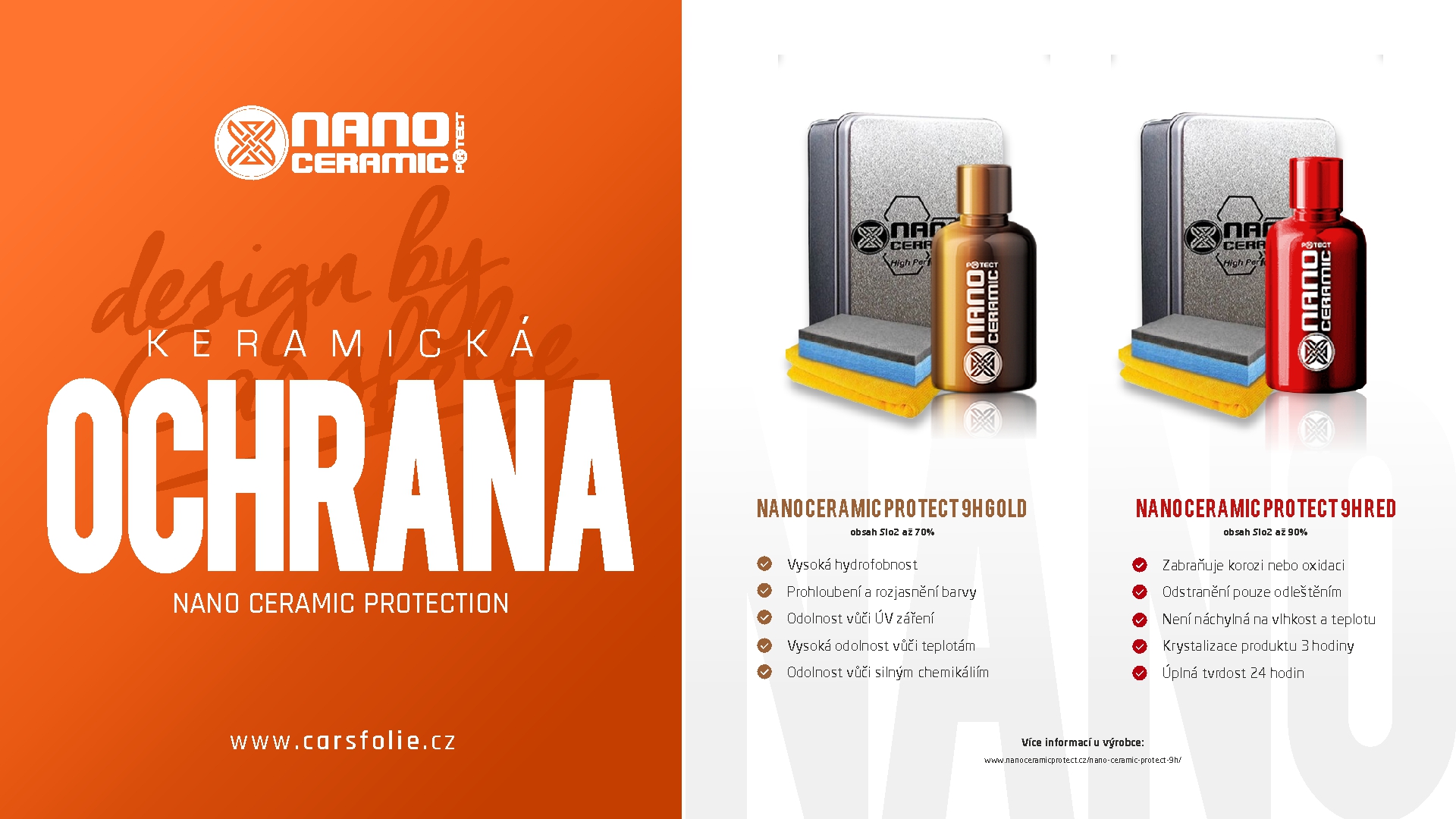 Keramická ochrana je součástí kompletního balíčku PPF nebo také kompletních celo polepů, kde se jedná o tzv. prémiové fólie. A protože i fólie je materiál s omezenou životností, nabízíme možnost zakonzervovat ochranný polep nano technologií. Aplikace keramického povlaku se provádí bezprostředně po instalaci ochranného polepu a přináší mnoho výhod. Jednou z předností keramické ochrany fólie, je snadná údržba vozidla. Ale také chrání proti ÚV záření, které má vliv na životnost fólie. Prohloubí a rozjasní barvy atd.